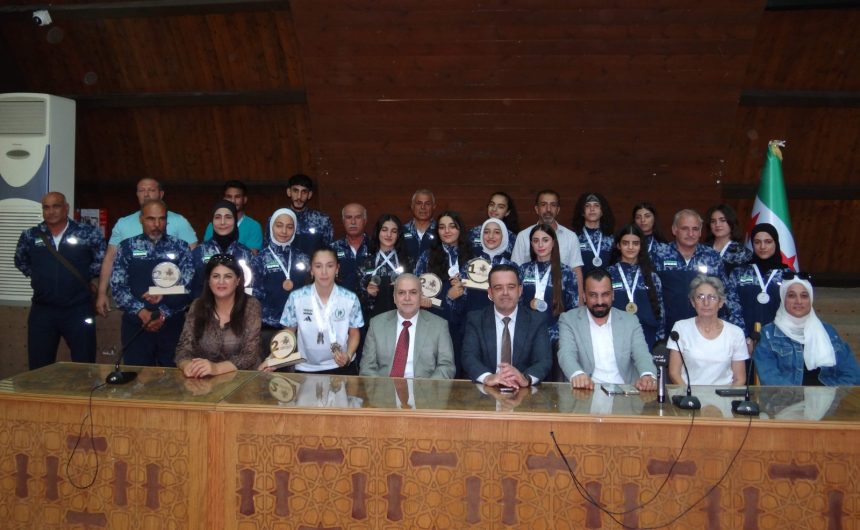 وقال الحاج أحمد “ربما حاول البعض التقليل من حجم الإنجاز، لكننا نعلم جميعًا الظروف التي نعيشها، ورغم كل ذلك أثبت اللاعب السوري أنه قادر على تحقيق الأفضل، التكريم اليوم هو مجرد خطوة رمزية أمام ما قدمه اللاعبون من تعب وجهد وتمثيل مشرّف للبلد، هذا النجاح يمنح الأمل والحافز لكل السوريين للاستمرار ورفع اسم الوطن عاليًا.”