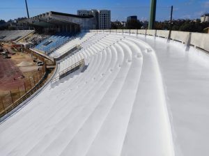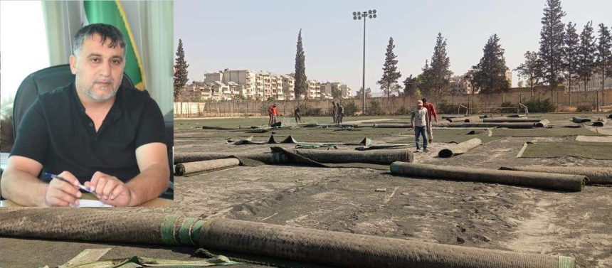 وعن صيانة وتجهيز ملاعب كرة القدم التي تستضيف منافسات الدوري المحلي بكافة درجاته وفئاته أضاف “المغيرة”: سياسة المكتب حالياً الاعتماد على كوادرنا وخصوصاً أننا استقدمنا العمال المطلوبين من مؤسسة الإسكان والعمل بهذا المجال بتمويل ذاتي لصيانة كافة الملاعب العشبية (بعد إنتهاء العقود السابقة مع شركة الإسكان) التي كانت تقوم بصيانة وتجهيز أرضيات الملاعب و يتم تأمين المطلوب من مواد (بذار جازون ورمل وأسمدة) من المديرية ففي حماة يوجد ملعبين جاهزين، وكذلك في طرطوس وكذلك ملعب الحمدانية بحلب الذي يتسع لـ /15/ ألف جاهز لإنطلاق الدوري وفي دمشق ملعبي الفيحاء والجلاء (عشب صناعي) جاهزين لإستضافة المباريات، أما ملعب تشرين فالعمر الافتراضي للملعب قد انتهى، ويجب أن تتغير الأرضية كاملة منذ سنوات والتربة الموجودة حالياً مليئة بالأمراض إضافة إلى أن الملعب حالياً بحاجة لصيانة عامة للكهرباء والماء وصيانة الملعب ضمن خطة العام القادم، وفي اللاذقية نعمل على صيانة للملعب البلدي (إنارة، عزل) وفي دير الزور الملعب جاهز (عشب صناعي)، وحالياً يتم دراسة كافة ما يحتاجة الموقع من الإنارة والمدرجات والسور الخارجي إضافة أعمال معمارية وحالياً المشروع قيد الإعلان، وفي الأشهر المتبقية لهذا العام سيتم صيانة فندق الرياضيين بالحمدانية بحلب صيانة كاملة (تأهيل وصيانة كاملة ومعمارية ومدنية وكهربائية وصحية) وتم الإعلان على مشروع صيانة ملعب الساروت (ملعب بابا عمر سابقاً) للمرة الثانية أما ملعب ملعب خالد بن الوليد فهو حالياً قيد الصيانة بمبادرة من المجتمع المحلي، وفي اللاذقية ملعبي (البلدي وجبلة) جاهزين بشكل كامل.