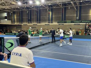 ضمن تصفيات كأس ديفيز للمجموعة العالمية الثانية حقق منتخبنا الوطني لكرة المضرب فوزا غالياً ومستحقاً وتاريخياً على نظيره الإيرلندي بواقع ثلاث مجموعات مقابل مجموعة واحدة.